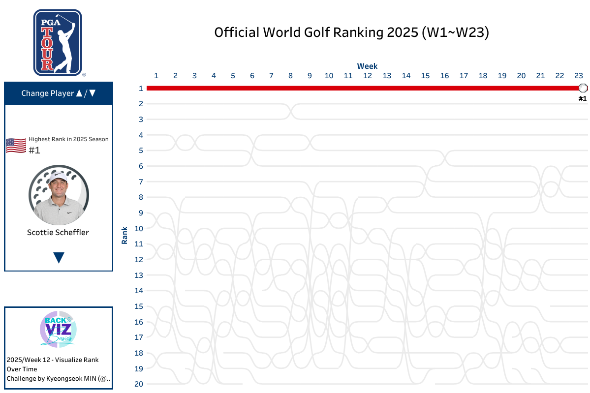 Standout Viz of the Week: Official World Golf Ranking 2025 (W1-W23) by Kyeongseok MIN